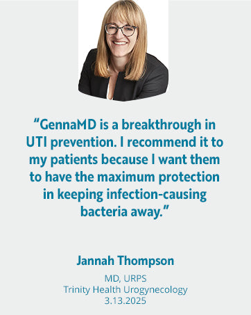 During menopause, lower estrogen levels can thin the urinary tract lining and alter vaginal pH, making it easier for UTI-causing bacteria to grow and stick, increasing your risk for infection. While vaginal estrogen is a first-line therapy for recurrent UTIs caused by hormonal shifts, GennaMDis a great clinically proven addition to help maintain good post-menopausal urinary health.